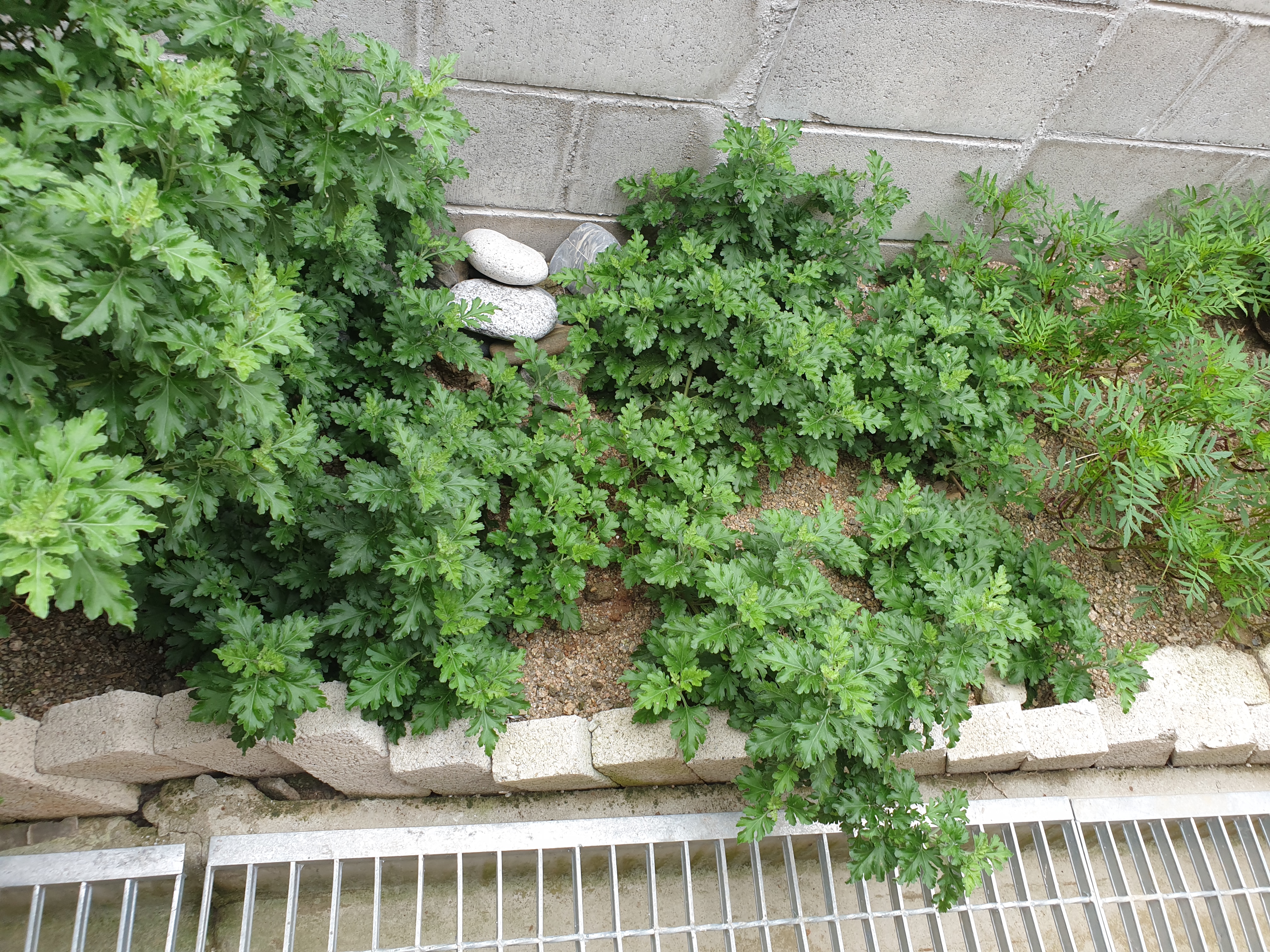 담장아래 국화와 마리골드도 한창 퍼져