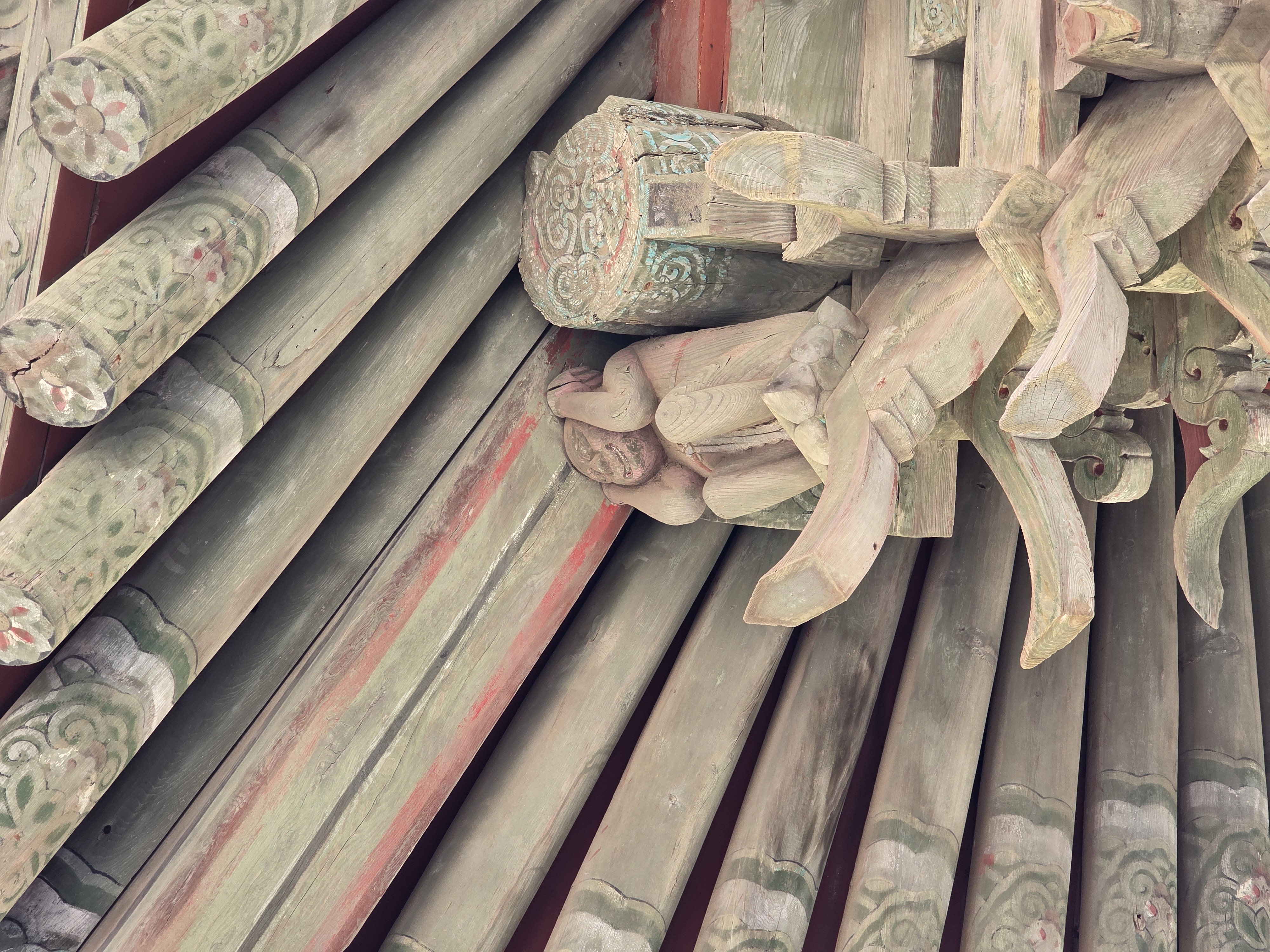 추녀 끝 원숭이가 꿇어앉은 형태.